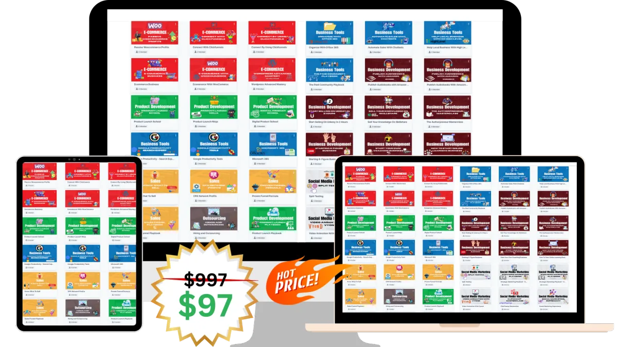 The $97 is a one-time investment that grants you unlimited access to the current library and all future course additions. There are no hidden fees or recurring charges. We believe in transparent pricing and delivering immense value for your investment.